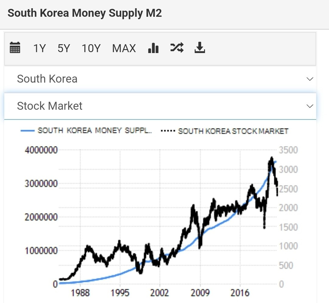 - M2가 늘어난다는 건 시장에 돈이 많아진다는 뜻